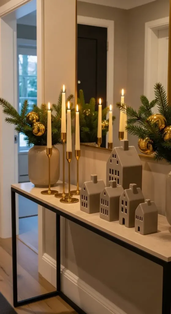 Add touches of warm gold through candle holders and ornaments. The result is a look that is understated and so elegant.