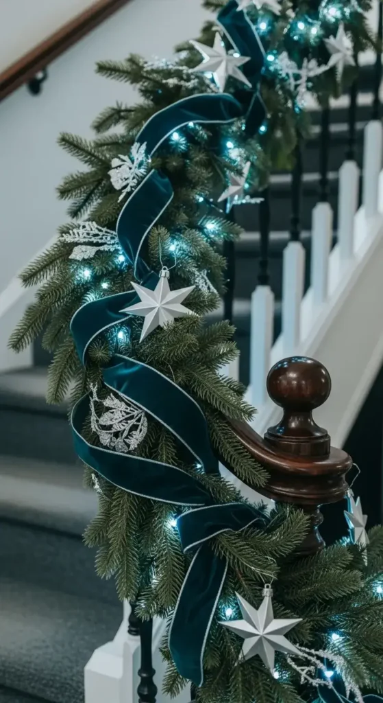 Imagine sage green wreaths decorated with small, dusty pink berries. This palette is subtle and feels like a calm winter garden scene. It’s a fresh take on Christmas color schemes.