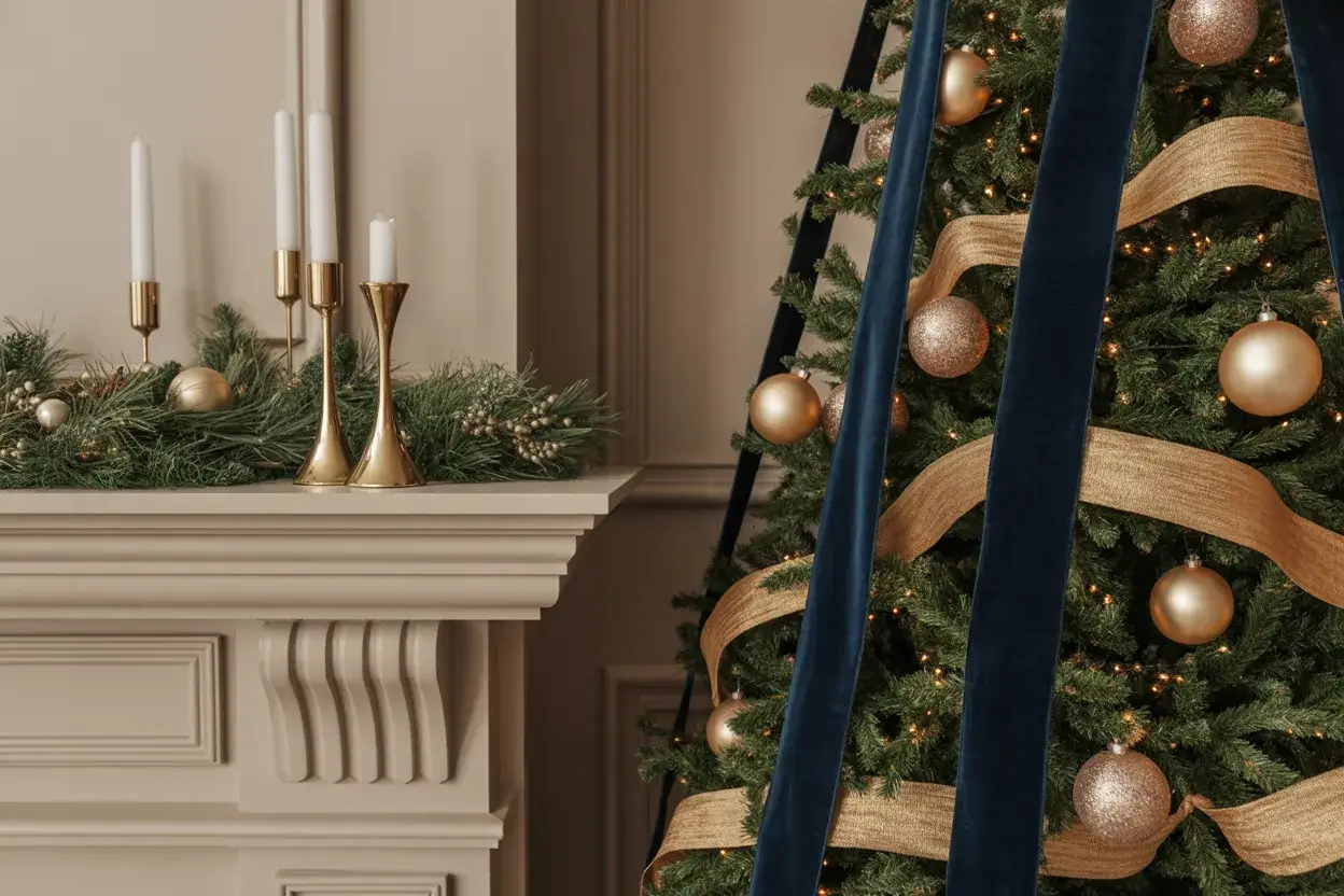 Play with different finishes. Pair matte greige ornaments with shiny gold ones. Add textures like linen and aged metal. This creates a rich, layered look that feels very collected and high-end, yet still cozy.