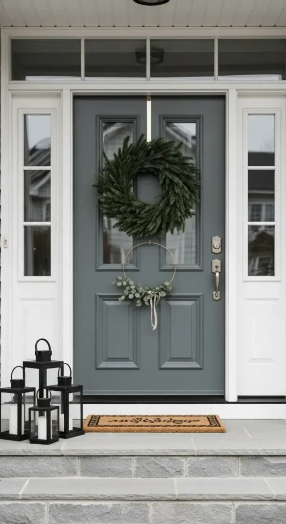 Sometimes, less is truly more. The Scandinavian approach is clean, modern, and beautifully understated. It’s perfect for a calm and stylish holiday entrance.