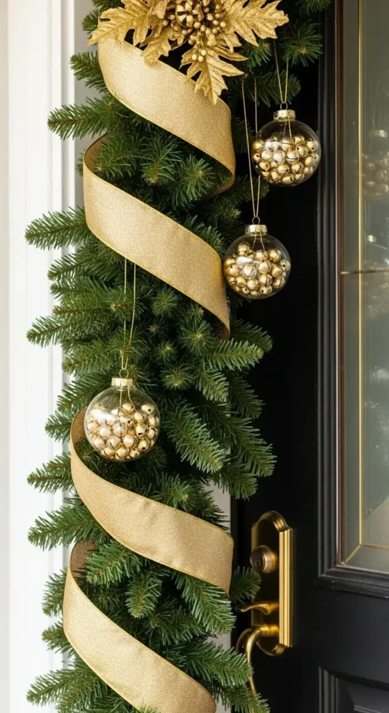 Weave thick, gold-wired ribbons through a lush green garland around your door. This immediately adds a touch of luxury. The light will catch it beautifully.