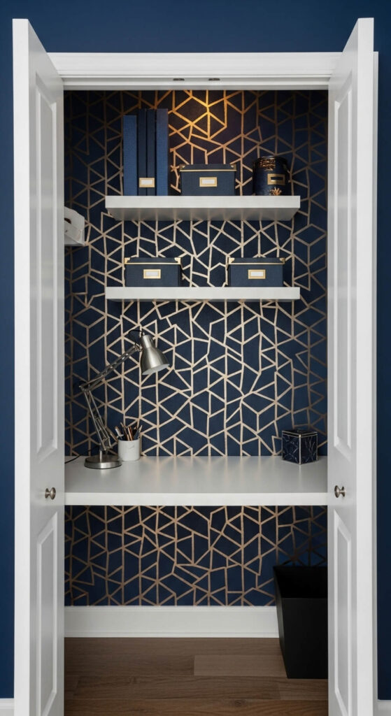 Paint or wallpaper the inside of the closet. A bold color or fun pattern will make your “cloffice” feel like a special, designated space.