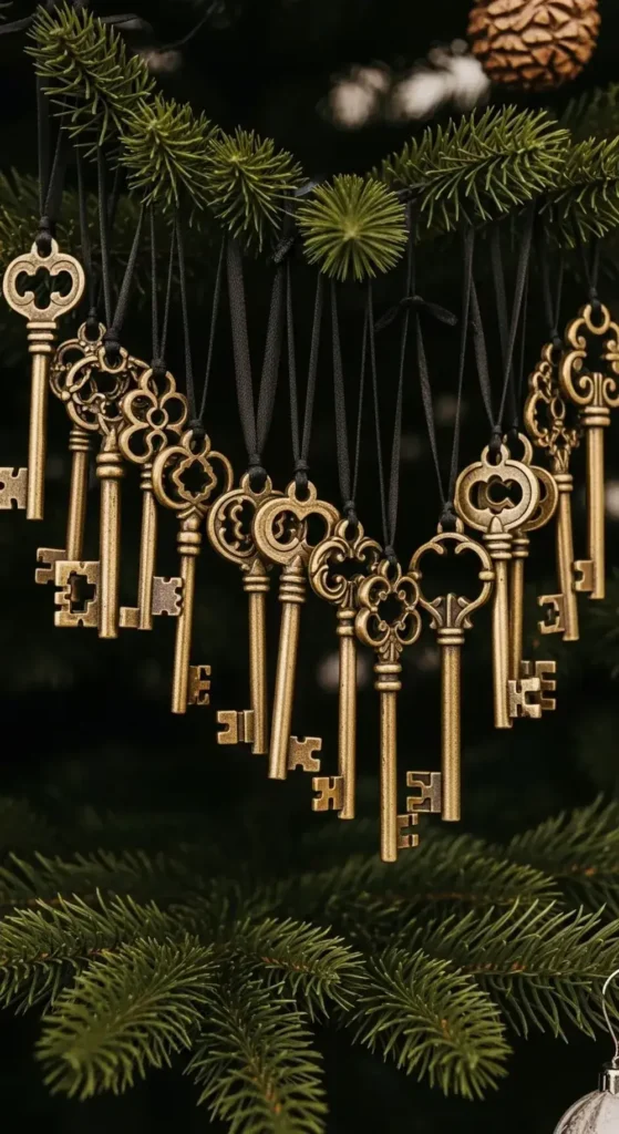I love a touch of mystery on my tree. A collection of mismatched brass keys is perfect for this. Their ornate shapes are so beautiful.