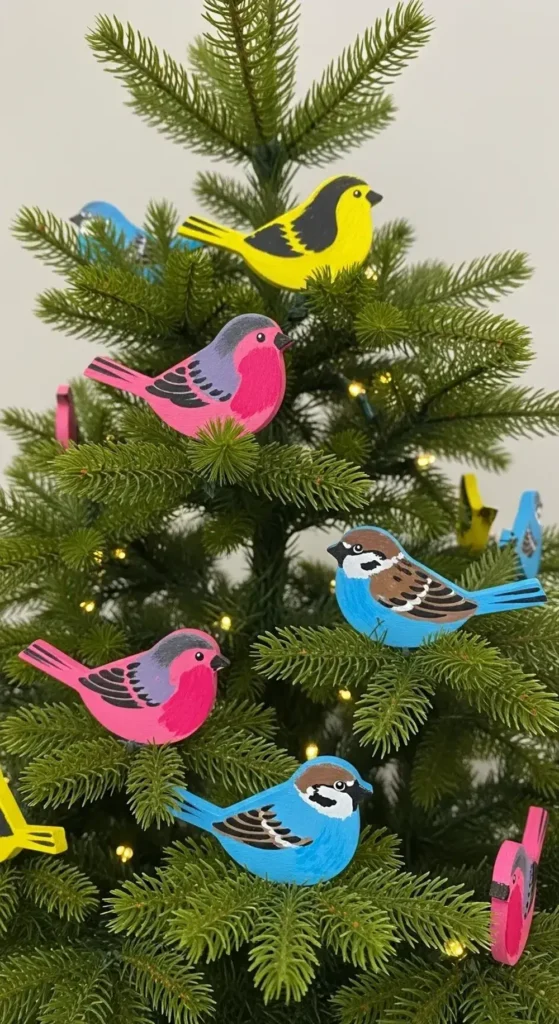 Their bright colors really pop against the green branches. They add a cheerful, whimsical touch that feels so full of character.