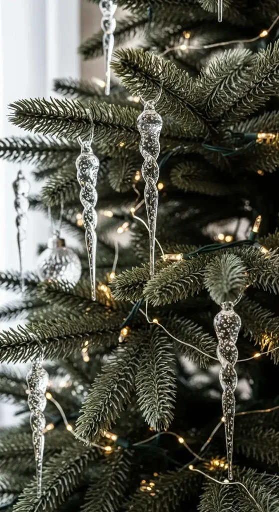 It looks like your tree was just brought in from a frost. They reflect your fairy lights beautifully, adding a crisp, wintery shimmer.