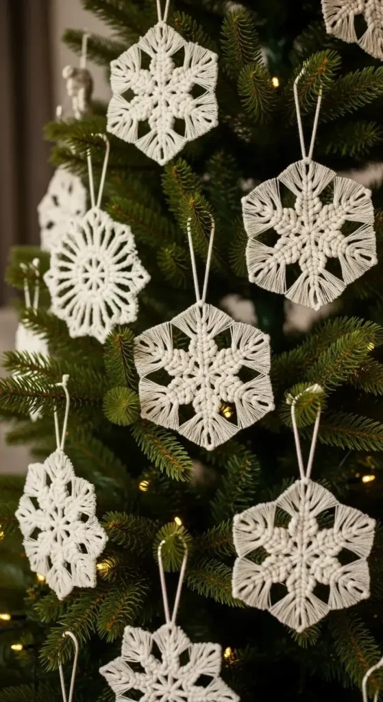 17. Fringed Macrame Snowflakes